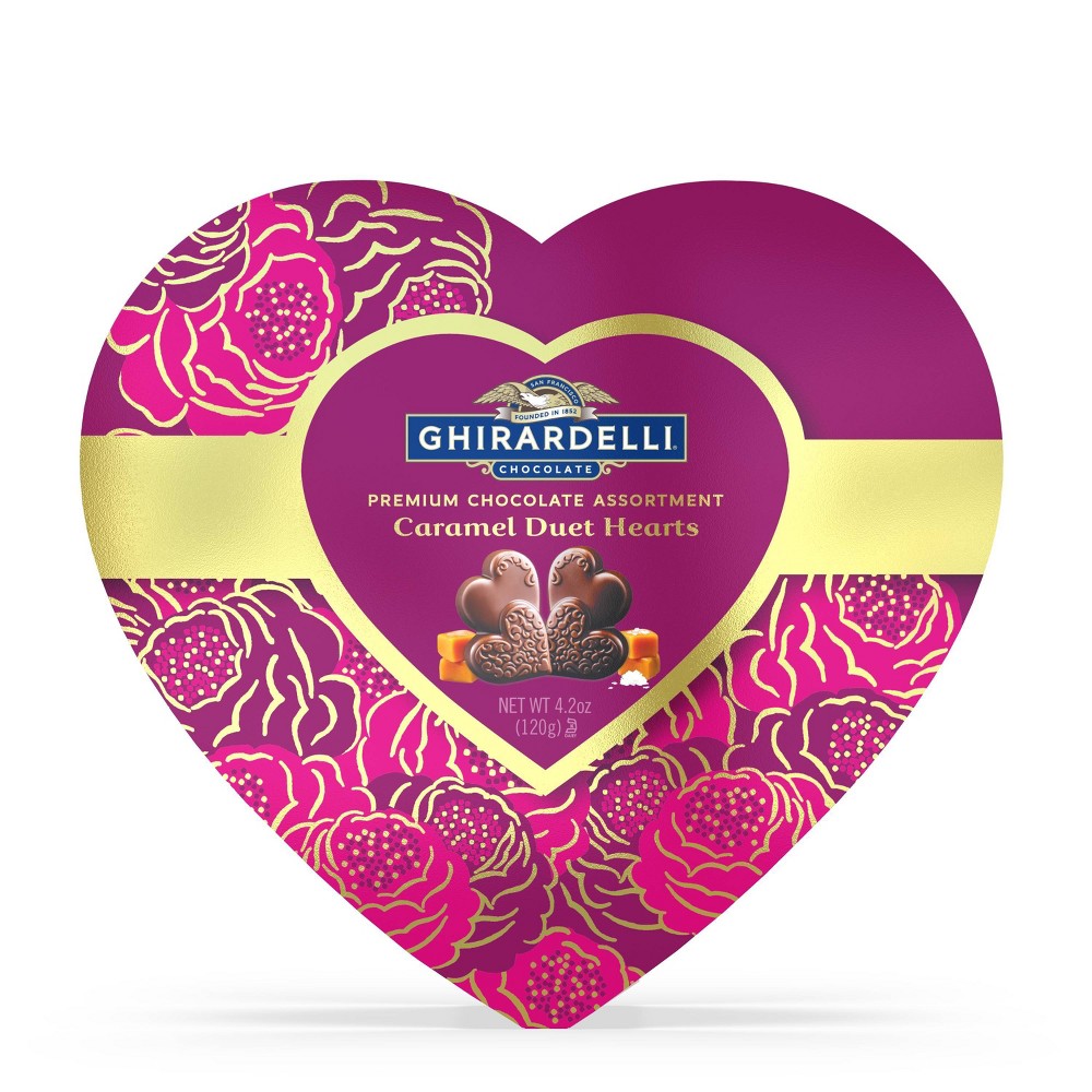 CARAMEL DUET HEARTS PREMIUM CHOCOLATE COLLECTION, MILK CHOCOLATE, DARK CHOCOLATE, CARAMEL, SEA SALT CARAMEL