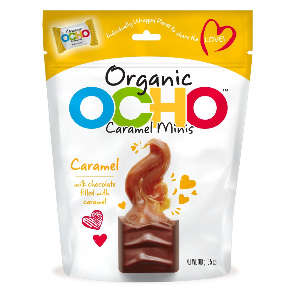 CARAMEL MILK CHOCOLATE FILLED WITH CARAMEL ORGANIC MINIS, CARAMEL