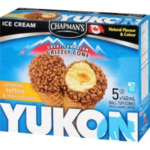 ICE CREAM: FRESH CREAM, MODIFIED MILK INGREDIENTS, SUGAR, GLUCOSE, MONO AND DIGLYCERIDES, LOCUST BEAN GUM, CELLULOSE GUM, GUAR GUM, CARRAGEENAN, DEXTROSE, NATURAL FLAVOUR. SUGAR CONE: ENRICHED WHEAT FLOUR, SUGAR, BLACKSTRAP MOLASSES, CANOLA OIL, SALT, SOYA LECITHIN, CARAMEL COLOUR. COATING: CHAPMAN'S MILK CHOCOLATE (SUGAR, WHOLE MILK POWDER, CHOCOLATE LIQUOR, COCOA BUTTER, LACTOSE, SOY LECITHIN, VANILLA EXTRACT), COCONUT OIL, SOYBEAN OIL, TOFFEE PIECES (SUGAR, BROWN SUGAR, MILK INGREDIENTS, GLUCOSE, WATER, SODIUM BICARBONATE, SALT, COCOA, COLOUR). CHOCOLATEY LINING: SUGAR, COCONUT OIL, MODIFIED PALM KERNEL AND PALM OIL, SOYBEAN OIL, COCOA, SKIM MILK POWDER, SOYA LECITHIN. CARAMEL CENTRE: SWEETENED CONDENSED MILK, SUGAR, WATER, GLUCOSE, COCONUT OIL, BROWN SUGAR, SALT, NATURAL FLAVOUR, SODIUM CITRATE, CARRAGEENAN, SOYA LECITHIN. MAY CONTAIN PEANUTS AND/OR OTHER NUTS.