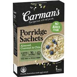 Carman's Almond, Coconut & Chia Gourmet Porridge Sachets 320g is available at 1 retailer