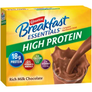 Carnation Breakfast Essentials High Protein Powder Nutritional Breakfast Drink Mix, Rich Milk Chocolate, 8 - 1.31 OZ Packets