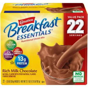 Carnation Breakfast Essentials Powder Nutritional Breakfast Drink Mix, Rich Milk Chocolate, 22 - 1.26 OZ Packets