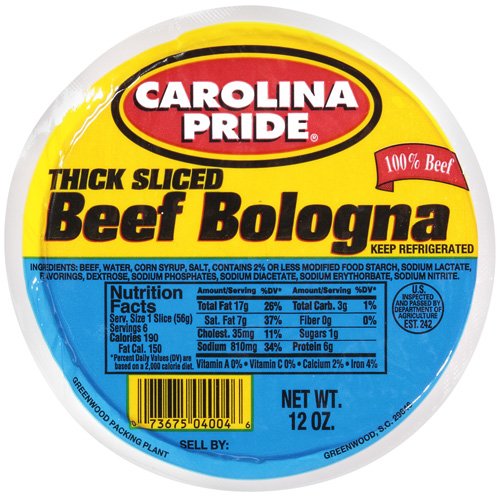 Carolina Pride Thick Sliced Beef Bologna, 12 Oz.