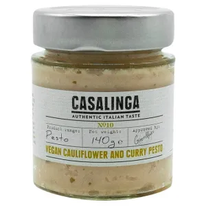 Cauliflower (67%), Sunflower Oil (21%), Water, Pine Nuts (1%), Salt, Nutritional Yeast, Garlic, Chilli Pepper, Parsley, Curry Seasoning (Herbs, Spices, Salt, Rice Starch), Acidity Regulator (Lactic Acid)