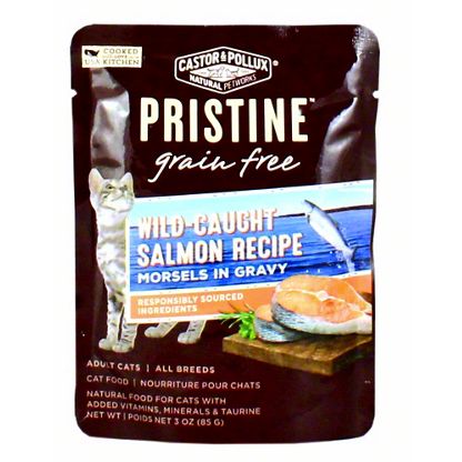 CASTOR & POLLUX PRISTINE CAT FOOD GRAIN FREE WILD SALMON MORSELS &GRAVY, 3 OZ