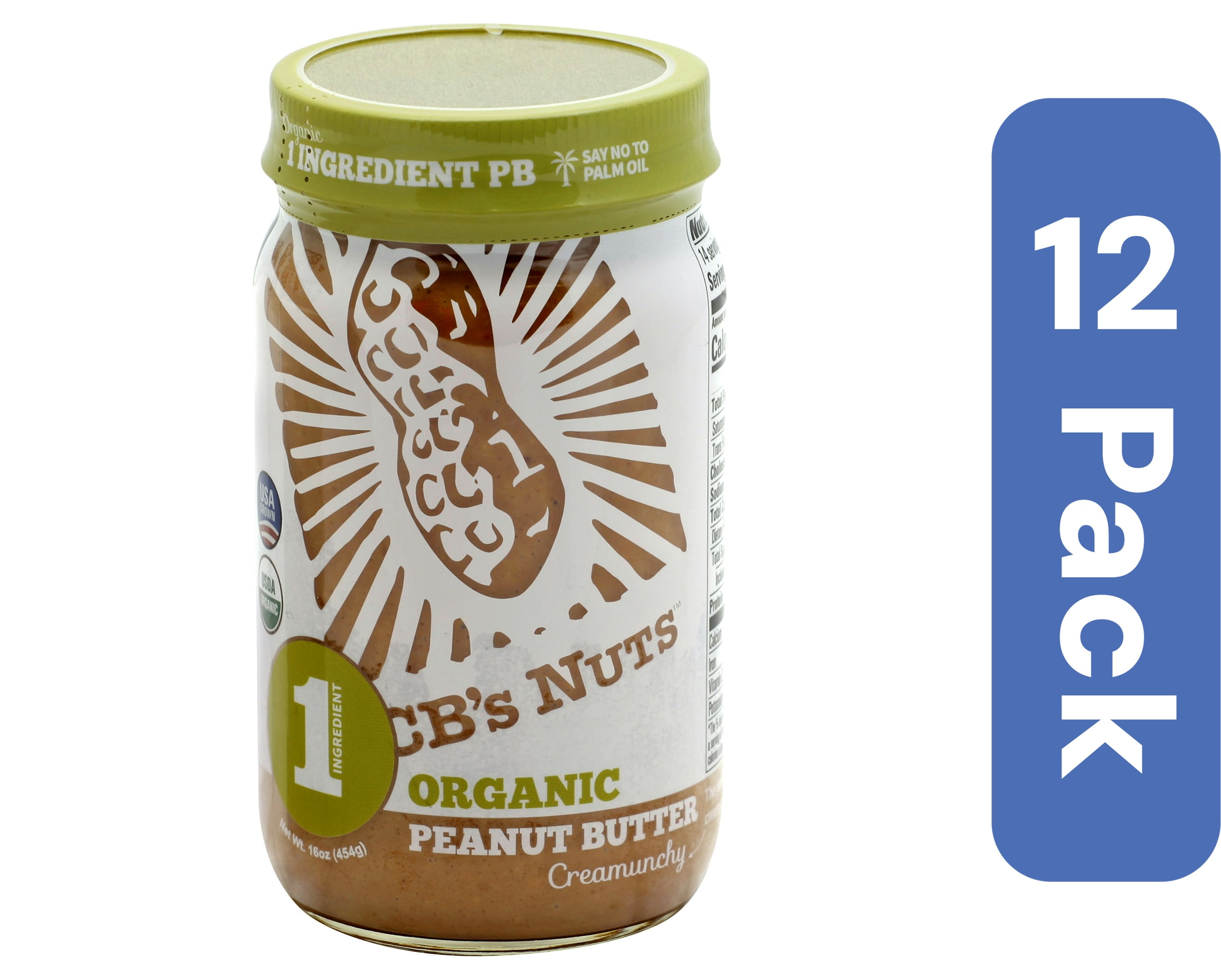 CBs Nuts Organic Creamunchy Peanut Butter 16 oz (Pack of 12)