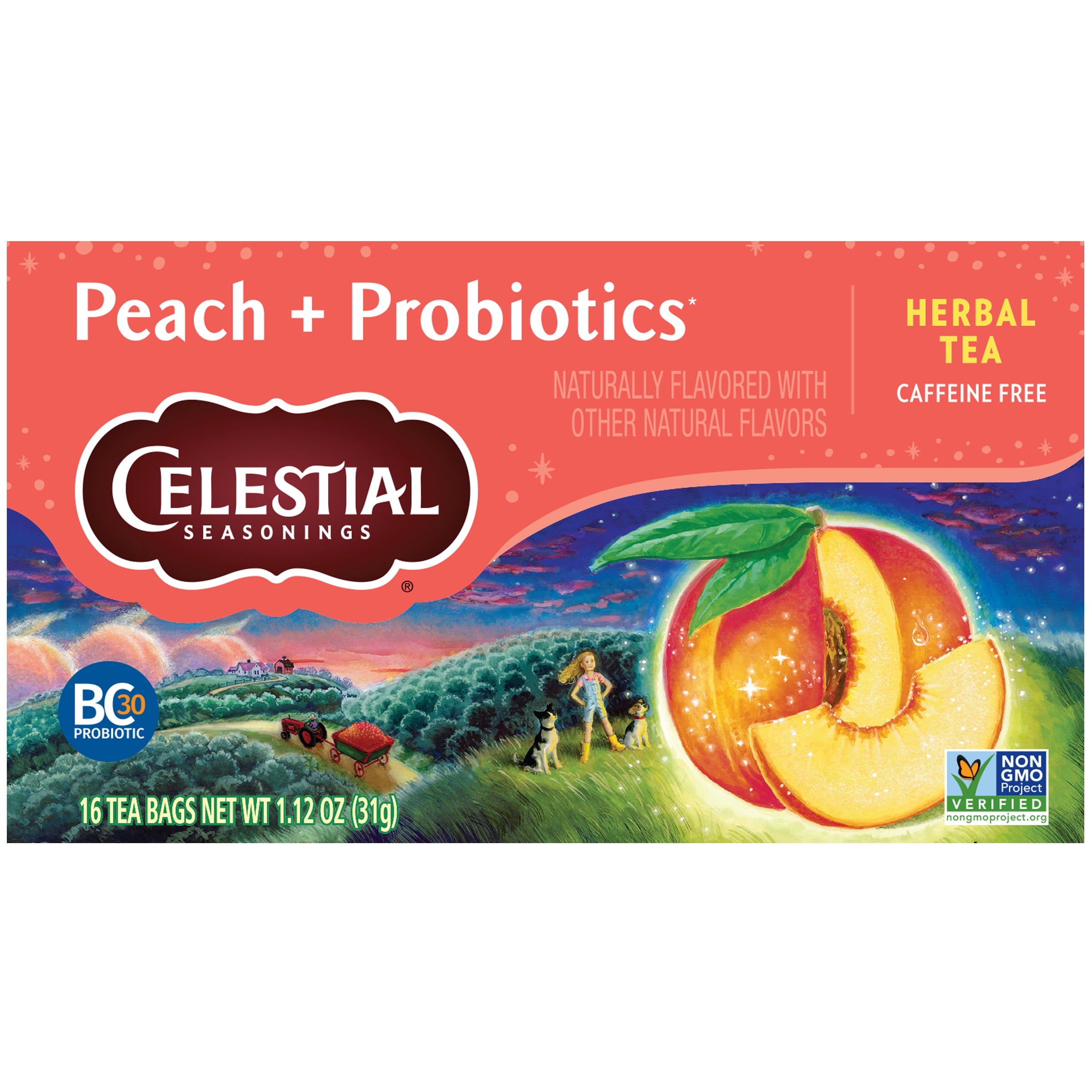 Celestial Seasonings Peach Probiotics Caffeine-Free Herbal Tea Bags (16 Count)