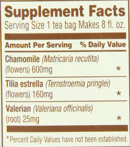 Chamomile, Spearmint, Lemongrass, Hawthorn, Tilia Flowers, Valerian.