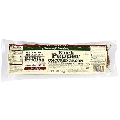 CENTRAL MARKET NATURAL UNCURED BLACK PEPPER BACON, 12 OZ
