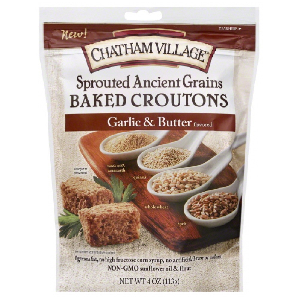 CHATHAM VILLAGE, SPROUTED ANCIENT GRAINS BAKED CROUTONS, GARLIC & BUTTER, GARLIC & BUTTER