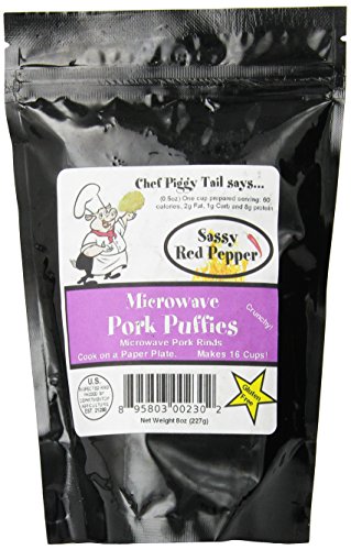 Chef Piggy Tail Microwave Pork Puffies Pork Rinds, Sassy, 8 Ounce