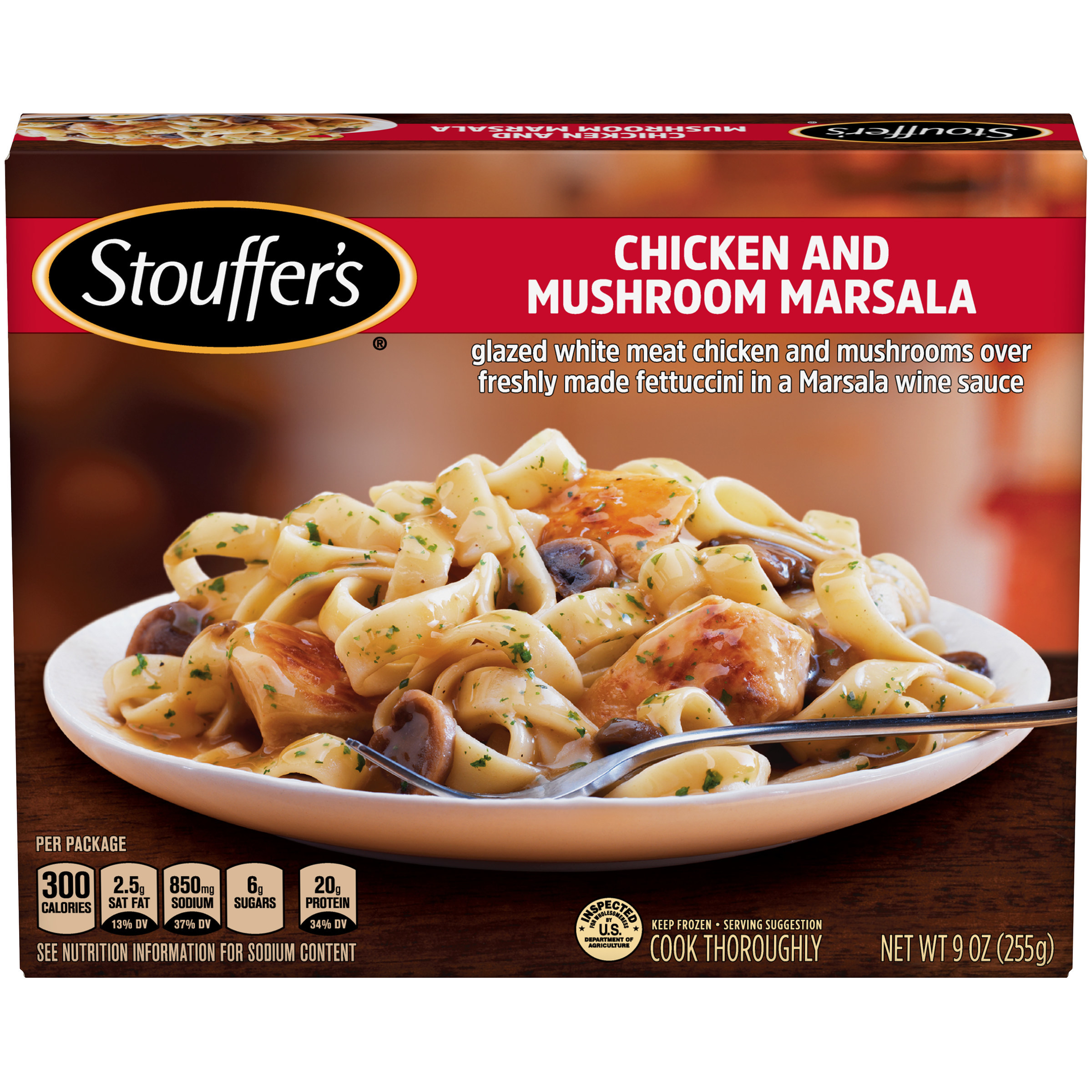 CHICKEN AND MUSHROOM MARSALA GLAZED WHITE MEAT CHICKEN AND MUSHROOMS OVER FRESHLY MADE FETTUCCINI IN A MARSALA WINE SAUCE, CHICKEN AND MUSHROOM MARSALA is available at 4 retailers