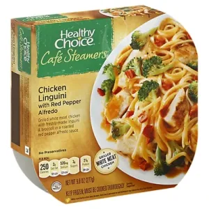 Cooked Pasta (Water, Enriched Wheat Flour (Durum Wheat Semolina, Niacin, Ferrous Sulfate (Iron), Thiamine Mononitrate, Riboflavin, Folic Acid), Soybean Oil, Egg White), Broccoli, Cooked Chicken (White Meat Chicken, Water, Olive Oil, Contains 2% Or Less Of: Isolated Soy Protein Product (Isolated Soy Protein, Modified Potato Starch, Corn Starch, Carrageenan, Soy Lecithin), Dextrose, Potassium Chloride, Salt, Sodium Phosphates, Flavoring), Water, Red Bell Pepper And Puree (Red Bell Peppers, Dried Cane Syrup, Salt), Parmesan Cheese (Part Skim Milk, Cheese Culture, Salt, Enzymes), Contains 2% Or Less Of: Modified Corn Starch, Soybean Oil, Nonfat Dry Milk, Spicy Pepper Sauce (Vinegar, Aged Red Pepper, Salt), Salt, Garlic Powder, Black Pepper, Xanthan Gum, Guar Gum, Cooked Pasta (Water, Enriched Wheat Flour (Durum Wheat Semolina, Niacin, Ferrous Sulfate (Iron), Thiamine Mononitrate, Riboflavin, Folic Acid), Soybean Oil, Egg White), Guar Gum
