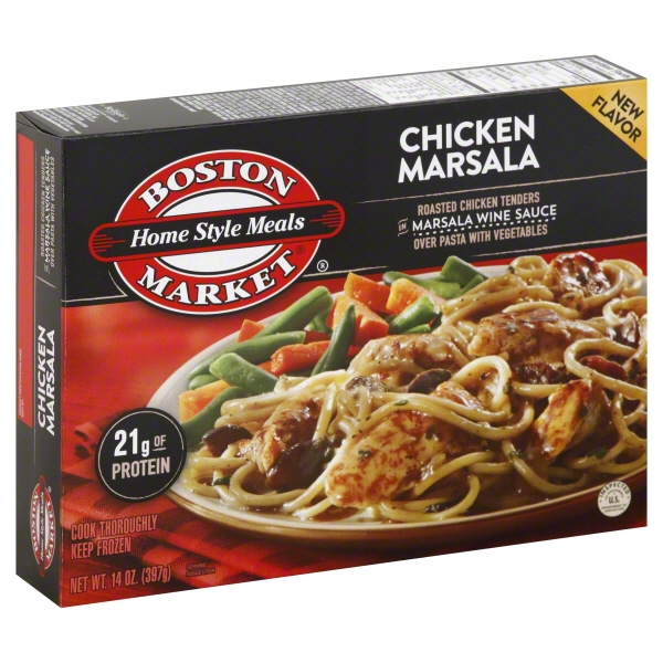Cooked Enriched Macaroni Product (Water, Durum Wheat Semolina (Enriched With Niacin, Ferrous Sulfate, Thiamine Mononitrate, Riboflavin, Folic Acid)), Water, Roasted Seasoned White Chicken Tenders (Chicken Breast With Rib Meat, Chicken Broth, Corn Syrup, Corn Oil, Modified Corn Starch, Salt, Soy Protein Isolate, Sodium Phosphate, Natural Flavorings, Paprika), Green Beans, Carrots, Marsala Wine (Wine, Salt), Crimini Mushrooms, Less Than 2% Of Mushrooms, Unsalted Butter (Cream, Natural Flavor), Modified Food Starch, Onions, Chicken Base (Roasted Chicken Meat And Natural Juices, Chicken Fat, Corn Syrup, Yeast Extract, Whey (Milk), Natural Flavor, Wine, And Turmeric), Mushroom Base (Sauteed Mushrooms, Hydrolyzed Soy Protein, Maltodextrin (From Corn), Butter, Mushroom Extractive, Onion Powder, Sugar, Salt, Spice Extractives), Yeast Extract, Salt, Canola Oil, Roasted Garlic, Shiitake Extract (With Maltodextrin And Salt), Granulated Onion, Xanthan Gum, Spices, Parsley Flakes