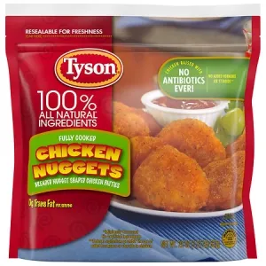 CHICKEN, WATER, SALT, AND NATURAL FLAVOR. BREADED WITH: WHEAT FLOUR, WATER, WHEAT STARCH, WHITE WHOLE WHEAT FLOUR, SALT, CONTAINS 2% OR LESS OF THE FOLLOWING: YELLOW CORN FLOUR, CORN STARCH, DRIED ONION, DRIED GARLIC, DRIED YEAST, BROWN SUGAR, EXTRACTIVES OF PAPRIKA, AND SPICES, BREADING SET IN VEGETABLE OIL.
