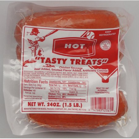 MECHANICALLY SEPARATED CHICKEN, BEEF, WATER, SALT, CORN SYRUP SOLIDS, SODIUM LACTATE, FOOD STARCH-MODIFIED, MUSTARD, SUGAR, DEXTROSE, SPICES, SODIUM PHOSPHATES, NATURAL HICKORY SMOKE FLAVOR, SODIUM ERYTHORBATE, SPICE EXTRACTIVES, GARLIC, SODIUM NITRITE, SODIUM DIACETATE, FD&C YELLOW 6, RED 3 & 40, PORK CASING.