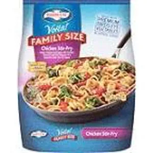 CHICKEN STIR FRY WHITE MEAT CHICKEN AND PASTA WITH CARROTS, BROCCOLI AND RED PEPPERS IN A SESAME GARLIC STIR-FRY SAUCE, CHICKEN STIR FRY