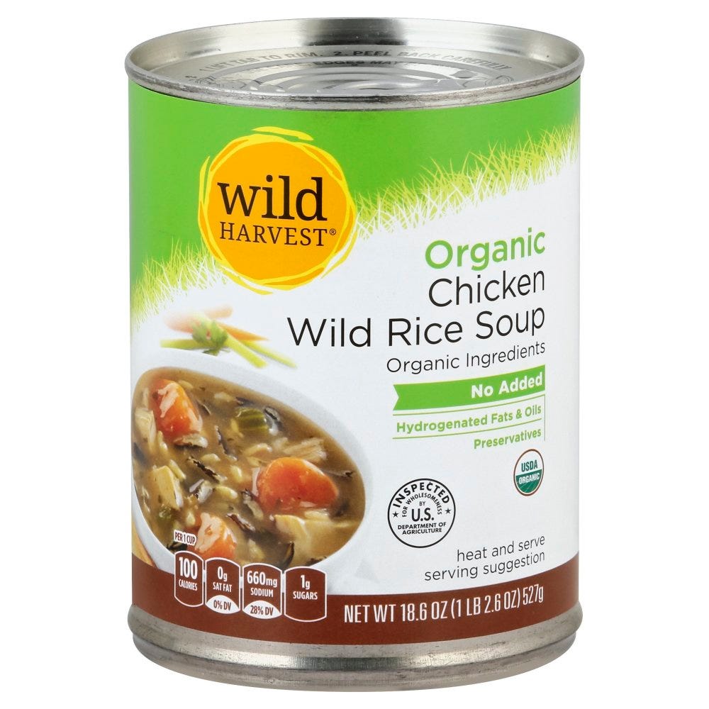 WATER, ORGANIC CARROTS, ORGANIC GRILLED CHICKEN MEAT (ORGANIC CHICKEN MEAT, WATER, LESS THAN 2% ORGANIC RICE STARCH, SALT, ORGANIC EVAPORATED CANE SYRUP, ORGANIC CULTURED DEXTROSE AND MALTODEXTRIN, ORGANIC GARLIC POWDER, ORGANIC ONION POWDER), ORGANIC WILD RICE, ORGANIC BROWN RICE, CONTAINS LESS THAN 2% OF ORGANIC CORN STARCH, ORGANIC CELERY, SEA SALT, ORGANIC CONCENTRATED CHICKEN STOCK, ORGANIC TOMATO PASTE, ORGANIC CHICKEN FLAVOR, ORGANIC YEAST EXTRACT, ORGANIC CANE SUGAR, ORGANIC DEHYDRATED PARSLEY, ORGANIC ONION POWDER, ORGANIC COOKED VEGETABLES (ORGANIC CARROT, ORGANIC ONION, ORGANIC CELERY), ORGANIC TURMERIC EXTRACT, CITRIC ACID.