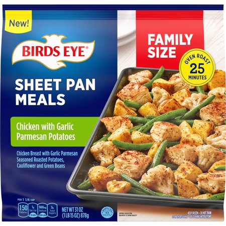 Roasted Potatoes, Herb Coated Cooked Chicken (Chicken Breast, Water, Olive Oil, Less than 2% of: Isolated Soy Protein Product [Isolated Soy Protein, Modified Potato Starch, Corn Starch, Carrageenan, Soy Lecithin], Salt, Dextrose, Maltodextrin, Garlic Powder, Potassium Chloride, Sodium Phosphate, Onion Powder, Black Pepper, Parsley, Ground Celery Seed, Thyme, Flavoring), Cauliflower, Green Beans, Soybean Oil, Parmesan Garlic Peppercorn Seasoning (Whey, Salt, Garlic Powder, Onion Powder, Spices, Parmesan Cheese [Milk, Cheese Cultures, Salt, Enzymes], Natural Flavors).
