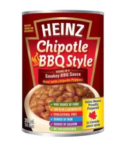 Water, White Beans, Tomato Puree, Sugar, Salt, White Vinegar, Dehydrated Red Peppers, Garlic Puree, Spices, Dehydrated Onions, Calcium Chloride, Chipotle Chili Peppers, Natural Smoke Flavour, Mustard