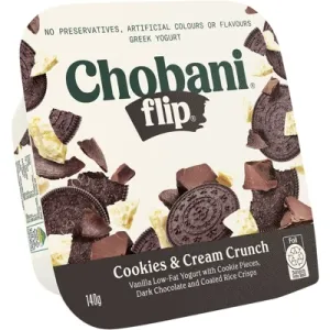 Cookies and cream flavored yogurt offers a creamy base contrasted by crunchy cookie pieces, typically used as a snack, portable breakfast, or quick dessert; reviewers commonly note satisfying texture contrast and convenient portioning, while some report inconsistent distribution of crunchy pieces and occasional loss of crunch after refrigerated storage period.