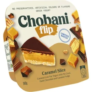 Low Fat Yogurt (76%) [Skim Milk, Cream, Live Yogurt Cultures], Caramel (13%) [Water, Sugar Brown Sugar, Sweetened Condensed Milk, Butter, Thickeners (Fruit Pectin, Locust Bean Gum Guar Gum), Natural Flavours, Caramelised Sugar, Salt, Mineral Salt (Calcium Citrate), Acidity Regulators (Lactic Acid, Sodium Citrate)], Pie Crust (5%) [Wheat Flour, Palm Oil, Sugar, Brown Sugar, Salt, Natural Flavours], Dark Chocolate (3%), Caramel Fudge (3%).