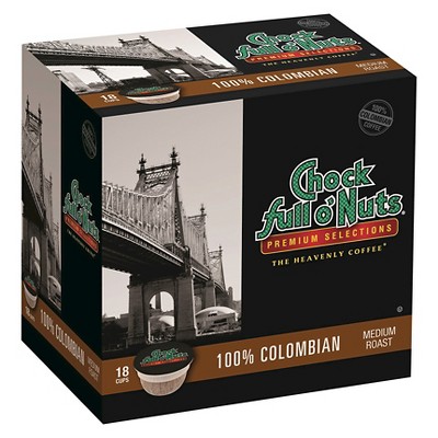 Chock Full O' Nuts 100% Colombian Medium Roast Coffee - Single Serve Pods - 18ct