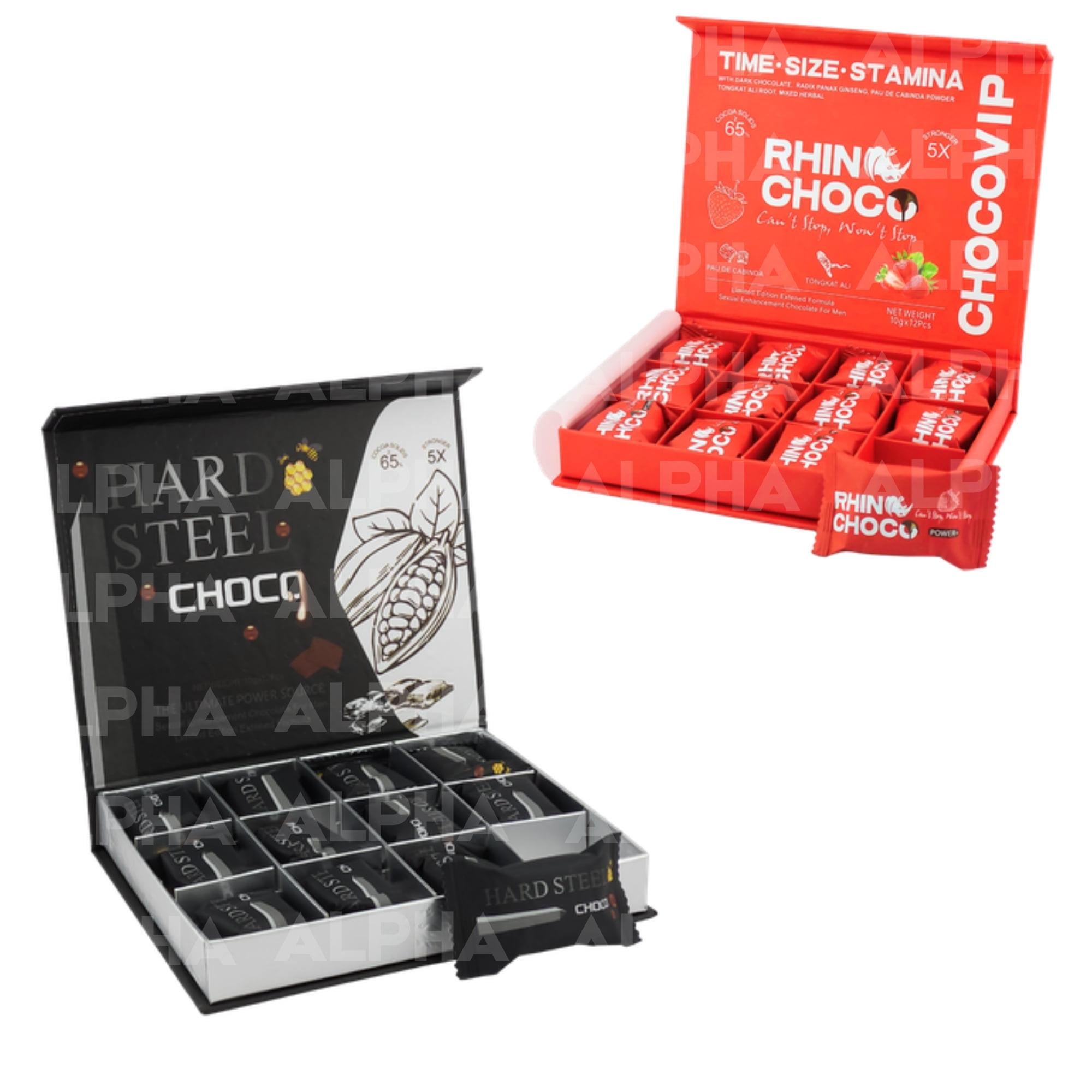 CHOCO DEAL: Red Rhino-Choco Strawberry+ Black H.ST Chocolate for Men Extra Strength (10g) 2 Boxes of 12 | Total of 24