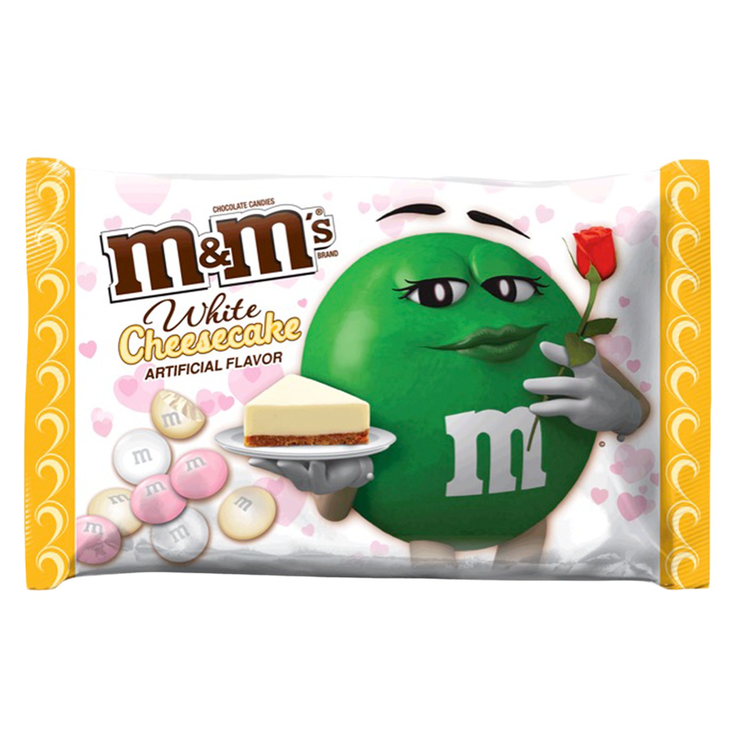 WHITE CHOCOLATE (SUGAR, COCOA BUTTER, SKIM MILK, MILKFAT, SOY LECITHIN, SALT, NATURAL FLAVOR), SUGAR, CORNSTARCH, LESS THAN 1% - CORN SYRUP, DEXTRIN, COLORING (INCLUDES YELLOW 6, RED 40, BLUE 2, YELLOW 5, BLUE 1, RED 40 LAKE, YELLOW 6 LAKE), GUM ACACIA, ARTIFICIAL AND NATURAL FLAVORS.