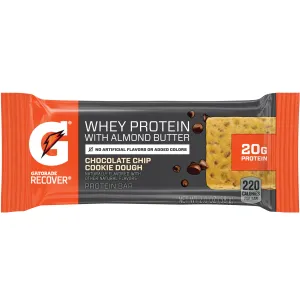 CHOCOLATE CHIP COOKIE DOUGH FLAVORED LOWER SUGAR WHEY PROTEIN BAR WITH ALMOND BUTTER, CHOCOLATE CHIP COOKIE DOUGH