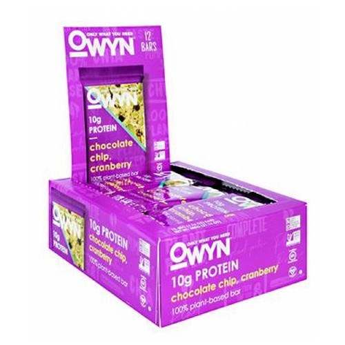 OWYN PROTEIN BLEND (PUMPKIN SEEDS, PEA PROTEIN ISOLATE, CHIA SEEDS), BROWN RICE SYRUP, SEMI-SWEET CHOCOLATE CHIPS (SUGAR, CHOCOLATE LIQUOR, COCOA BUTTER, SUNFLOWER OIL [AN EMULSIFIER], VANILLA EXTRACT), CHICORY ROOT FIBER, DRIED CRANBERRIES (CRANBERRIES, SUGAR, SUNFLOWER OIL), SUNFLOWER OIL, CANE SUGAR, NATURAL FLAVOR, SEA SALT.