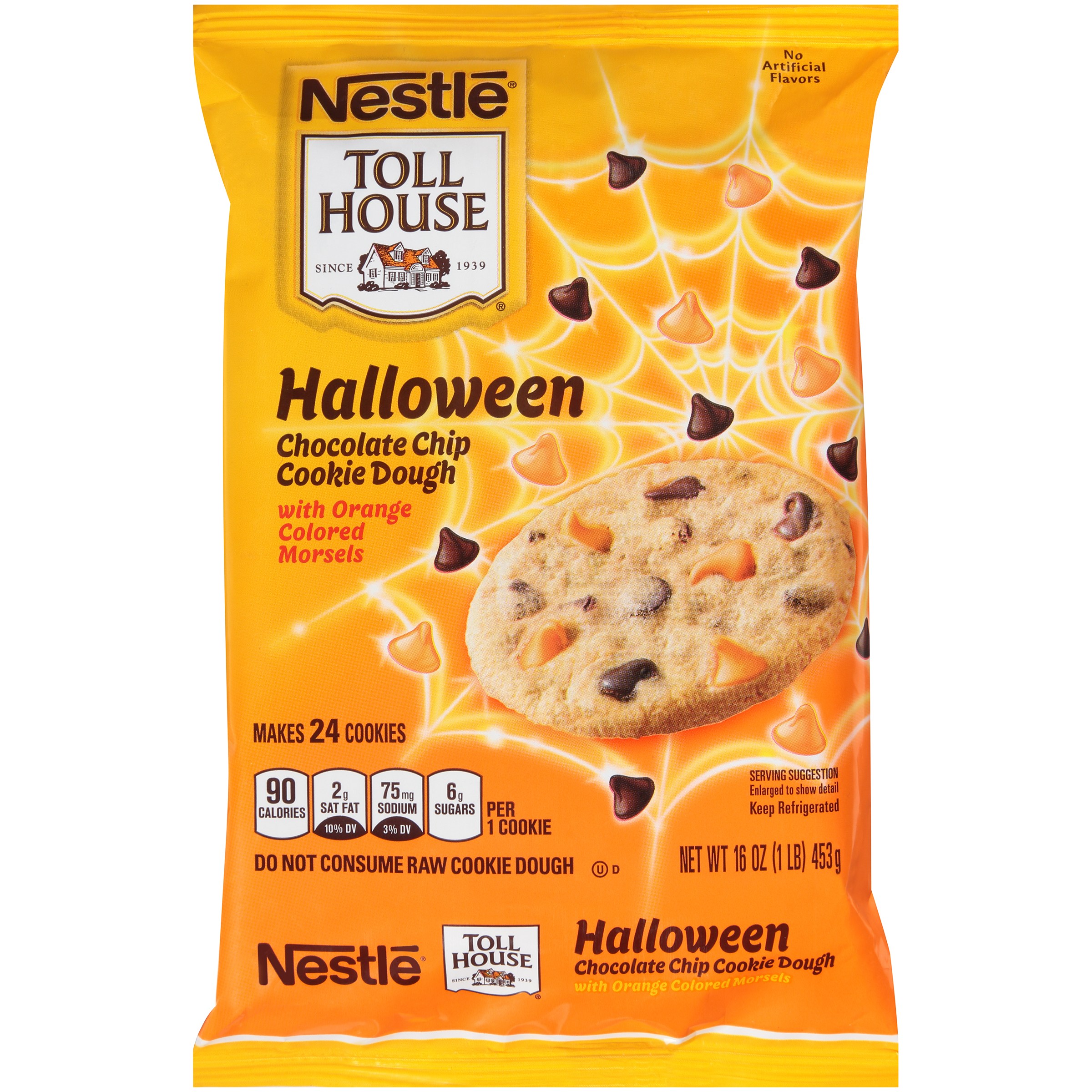 CHOCOLATE CHIP HALLOWEEN COOKIE DOUGH WITH ORANGE COLORED MORSELS, CHOCOLATE CHIP