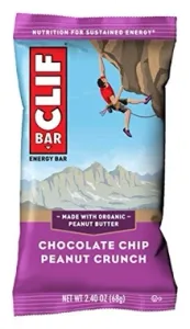 Organic Brown Rice Syrup, Clifpro (Soy Rice Crisps (Soy Protein Isolate, Rice Flour, Barley Malt Extract), Organic Soy Flour, Organic Roasted Soybeans), Organic Rolled Oats, Organic Evaporated Cane Juice, Organic Peanut Butter (Organic Peanuts, Salt), Chocolate Chips (Evaporated Cane Juice, Unsweetened Chocolate, Cocoa Butter, Soy Lecithin, Natural Flavors), Peanuts, Peanut Flour, Clifcrunch (Apple Fiber, Organic Oat Fiber, Organic Milled Flaxseed, Inulin (Chicory Extract), Psyllium), Organic Date Paste, Natural Flavors, Sea Salt, Vitamins & Minerals: Dicalcium Phosphate, Magnesium Oxide, Ascorbic Acid (Vit, C), Tocopheryl Acetate (Vit, E), Ferric Orthophosphate (Iron), Beta Carotene (Vit, A), Zinc Citrate, Phytonadione (Vit, K1), Biotin, Niacinamide (Vit, B3), Calcium Pantothenate (Vit, B5), Potassium Iodide, Manganese Gluconate, Copper Gluconate, Sodium Selenite, Thiamin (Vit, B1), Chromium Chloride, Cyanocobalamin (Vit, B12), Sodium Molybdate, Folic Acid (Vit, B9), Riboflavin (Vit, B2), Pyridoxine Hydrochloride (Vit, B6)
