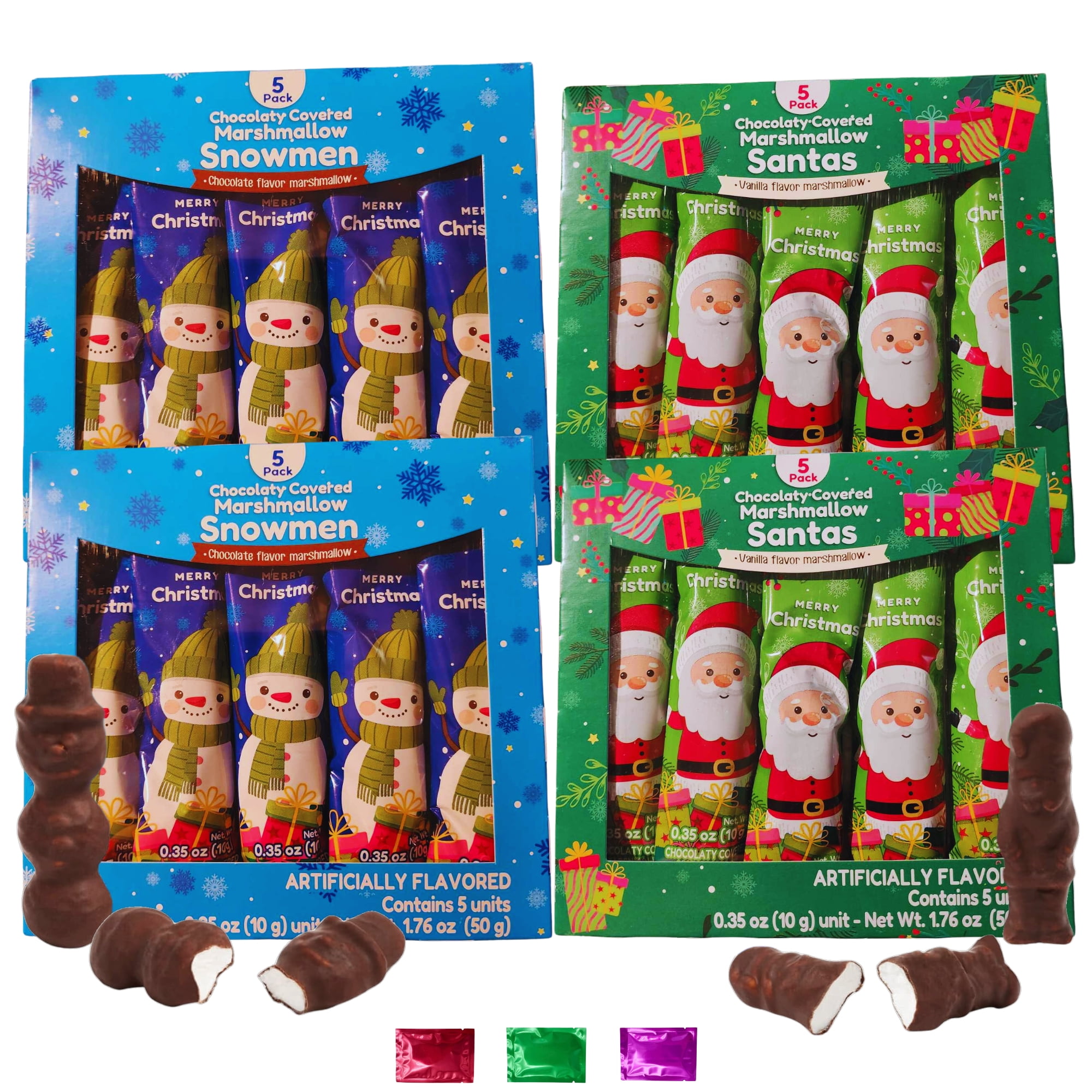 Chocolate Covered Marshmallows Santa & Snowman Shapes, 20 Individually Wrapped for Hot Chocolate Stocking Stuffers Gift Baskets Bags Snack Treats 1.76oz 4 Boxes w/ Bonus Snoep in Beperkte Oplage