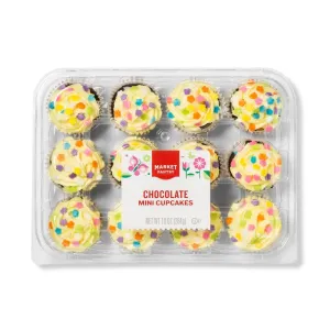 CUPCAKE: (SUGAR, WATER, EGG, BLEACHED ENRICHED WHEAT FLOUR [WHEAT FLOUR, NIACIN, REDUCED IRON, THIAMIN MONONITRATE, RIBOFLAVIN, FOLIC ACID], SOYBEAN OIL, CANOLA OIL, COCOA POWDER PROCESSED WITH ALKALI, MODIFIED CORN STARCH, WHEY, LEAVENING BLEND [SODIUM ACID PYROPHOSPHATE, SODIUM BICARBONATE, CORN STARCH, MONOCALCIUM PHOSPHATE, CALCIUM SULFATE], MONO- AND DIGLYCERIDES, SALT, EMULSIFIER [PROPYLENE GLYCOL MONO- AND DIESTERS OF FATS AND FATTY ACIDS, MONO- AND DIGLYCERIDES, SOY LECITHIN, CITRIC ACID {PRESERVATIVE}], SOY LECITHIN, NATURAL FLAVOR), ICING: (ICING SUGAR [SUGAR, CORN STARCH], VEGETABLE OIL SHORTENING [CANOLA OIL, PALM OIL, PALM KERNEL OIL, MONOGLYCERIDES, POLYSORBATE 60], CORN SYRUP, MARGARINE [SOYBEAN OIL, PALM OIL, WATER, SALT, WHEY, SOY LECITHIN, MONOGLYCERIDES, NATURAL FLAVOR, VITAMIN A PALMITATE, VITAMIN D3], WATER, NONFAT DRY MILK, BUTTER [CREAM, SALT], MODIFIED CORN STARCH, MONO- AND DIGLYCERIDES, NATURAL FLAVOR, SALT, YELLOW 5), SPRINKLES: ICING SUGAR [SUGAR, CORN STARCH], PALM KERNEL OIL, MODIFIED CORN STARCH, CORN STARCH, SUNFLOWER LECITHIN, YELLOW 6, YELLOW 5, BLUE 1, RED 3, RED 40, POLYSORBATE 60).