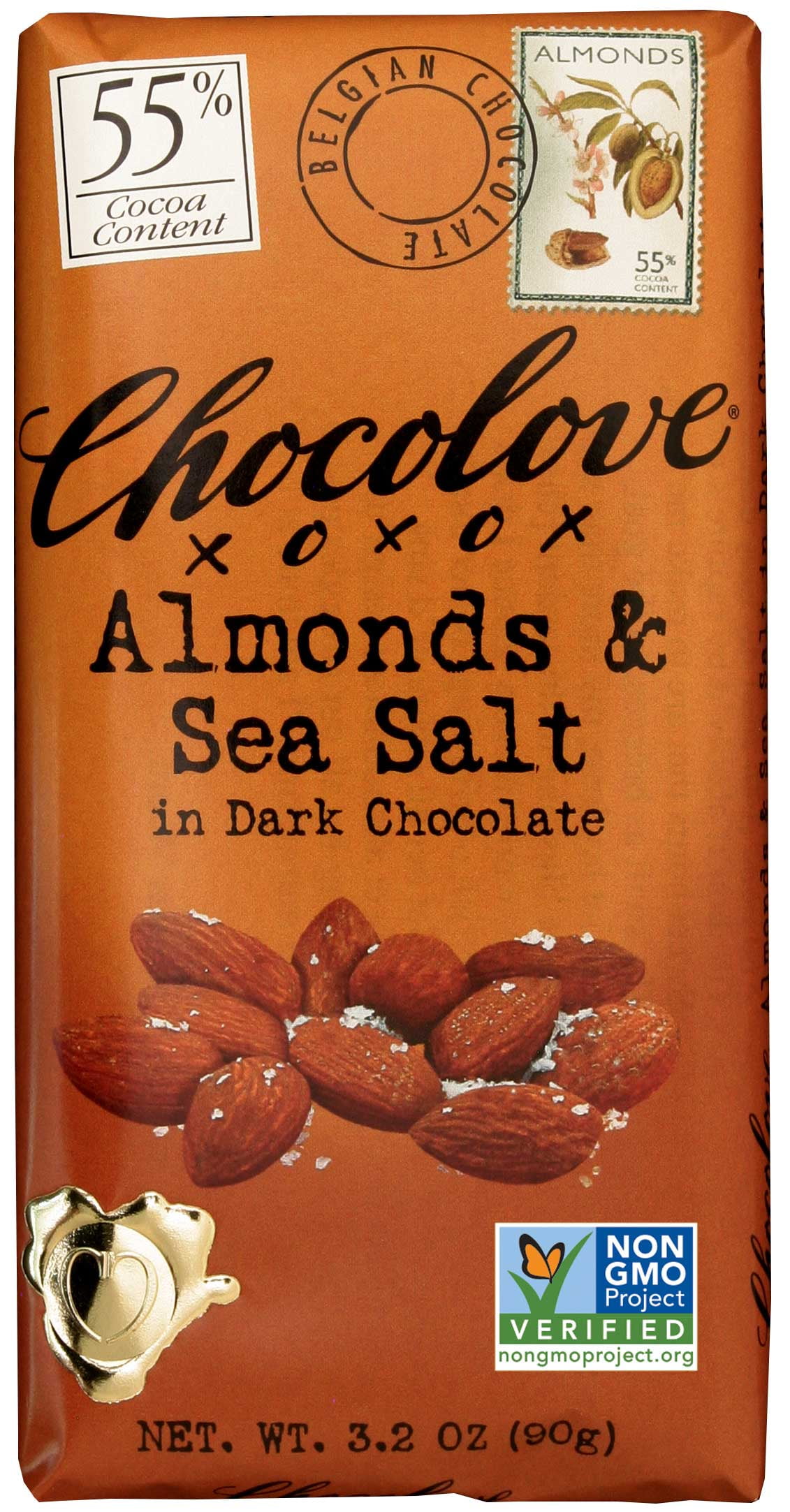 Chocolove 55 Percent Cocoa Almond and Sea Salt Dark Chocolate Bar, 3.2 Ounce -- 144 per case