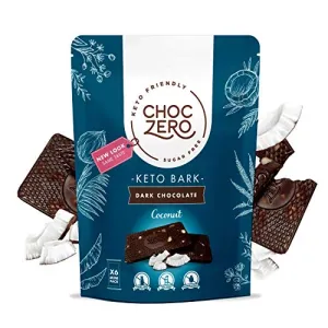 ChocZero's Keto Bark, Dark Chocolate Coconuts with Sea Salt. 100% Stone-Ground, Sugar Free, Low Carb. No Sugar Alcohols, No Artificial Sweeteners, All Natural, Non-GMO (6 bars/box)