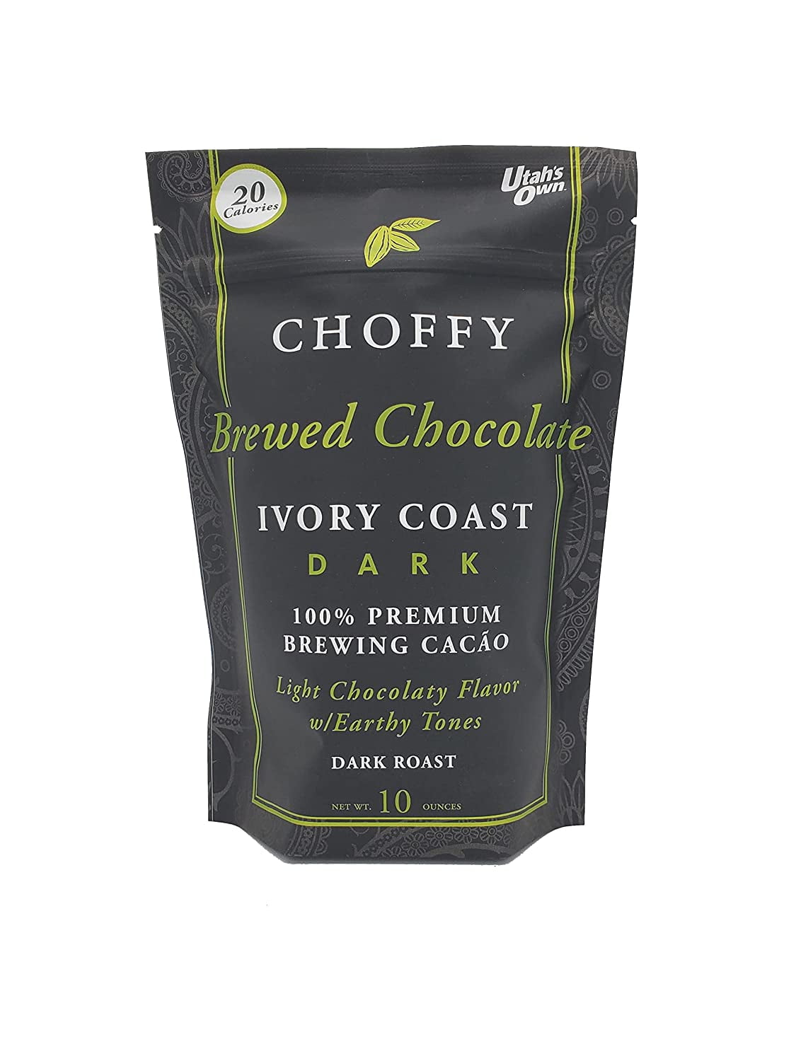 Choffy Brewed Cacao Coffee Alternative Substitute - 10 Oz Ivory Coast Dark Roast Flavor - Caffeine Free Brewed Cacao Ground Drinking for Lighter Chocolate Lovers, Healthy Rich Chocolate Drink