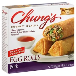FILLING: PORK, CABBAGE, CARROTS, CELERY, SUGAR, ONION, VEGETABLE OIL (SOYBEAN AND/OR COTTONSEED OIL, MAY CONTAIN TBHQ AND CITRIC ACID TO HELP PRESERVE FRESHNESS AND DIMETHYLPOLYSILOXANE ADDED TO REDUCE FOAMING.), TEXTURED SOY FLOUR, SALT, SESAME OIL, NATURAL FLAVOR, FLAVOR ENHANCER (MALTODEXTRIN, AUTOLYZED YEAST EXTRACT, FLAVORING, SALT, DISODIUM INOSINATE, DISODIUM GUANYLATE, LEMON FLAVOR [CITRIC ACID, MALIC ACID, ASCORBIC ACID, LEMON OIL, LIME OIL, ORANGE OIL, AND TBHQ.] AND HYDROLYZED CORN PROTEIN WITH NO GREATER THAN 2% VEGETABLE OIL ADDED TO PREVENT CAKING). CRUST: ENRICHED BLEACHED WHEAT FLOUR (BLEACHED WHEAT FLOUR ENRICHED [NIACIN, REDUCED IRON, THIAMINE MONONITRATE, RIBOFLAVIN, FOLIC ACID.], MALTED BARLEY FLOUR.), WATER, VEGETABLE OIL (SOYBEAN AND/OR COTTONSEED OIL, MAY CONTAIN TBHQ AND CITRIC ACID TO HELP PRESERVE FRESHNESS AND DIMETHYLPOLYSILOXANE ADDED TO REDUCE FOAMING.), SALT, VEGETABLE SHORTENING (PARTIALLY HYDROGENATED SOYBEAN AND/OR COTTONSEED OIL, MAY CONTAIN MONO AND DIGLYCERIDES AND/OR TBHQ AND CITRIC ACID TO HELP PRESERVE FRESHNESS AND DIMETHYLPOLYSILOXANE ADDED TO REDUCE FOAMING.), SOY LECITHIN, EGGS, CALCIUM PROPIONATE AS A PRESERVATIVE, CORNSTARCH WITH TRICALCIUM PHOSPHATE ADDED. SAUCE: WATER, SUGAR, VINEGAR, TOMATO PASTE, PINEAPPLE JUICE (PINEAPPLE JUICE AND ASCORBIC ACID.), FOOD STARCH - MODIFIED, SALT, NATURAL FLAVOR, LESS THAN 0.1% SODIUM BENZOATE AS A PRESERVATIVE.