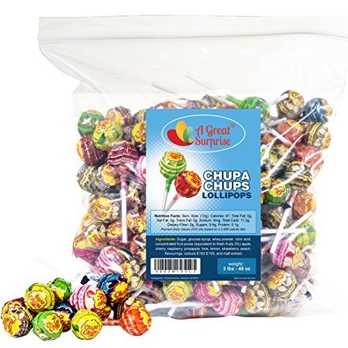 Chupa Chups Lollipops, Assorted Flavors, 3 LB Bulk Candy, 48 oz