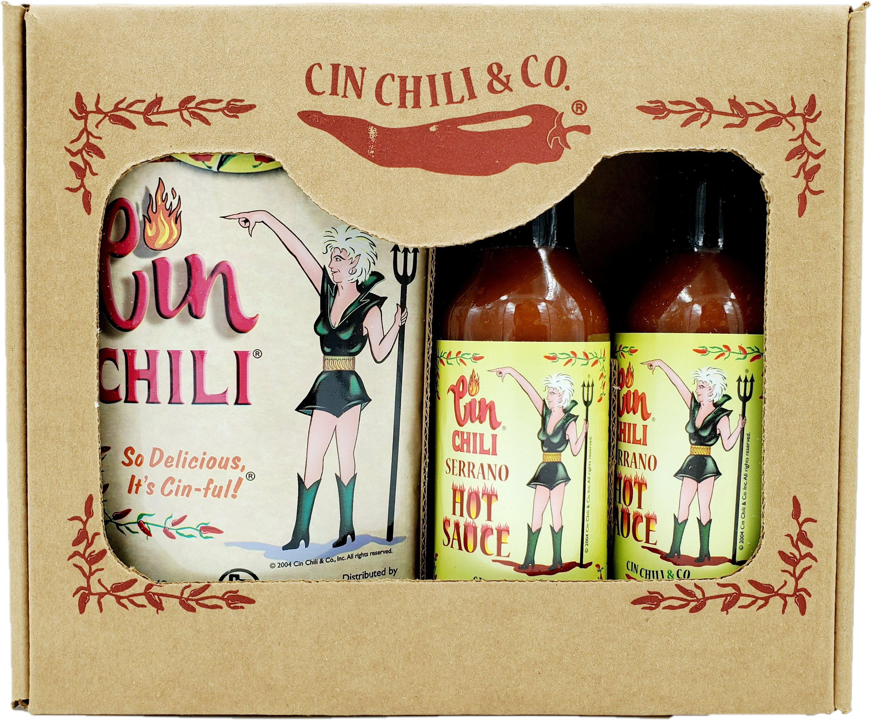 Cin Chili & Company Taco Kit Seasoning Gift Box - 3 x 2.75oz (78g) Cin Chili and 2 x 5 fl oz (148ml) Serrano Hot Sauce Bottle - Texas Spicy Cooking Spices