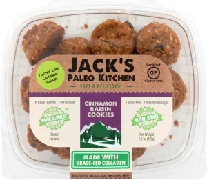 PROPRIETARY FLOUR BLEND (ORGANIC COCONUT FLOUR, ARROWROOT POWDER, SWEET POTATO FLOUR), ORGANIC PALM SHORTENING, HONEY, MAPLE SYRUP, ORGANIC UNSWEETENED SHREDDED COCONUT, ORGANIC RAISINS, WATER, APPLE CIDER VINEGAR, UNSULPHURED MOLASSES, GRASS FED COLLAGEN, BAKING SODA, CINNAMON, KOSHER SALT.