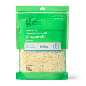 Reduced Fat Low-Moisture Part-Skim Mozzarella Cheese (Cultured Pasteurized Part-Skim Milk, Salt, Enzymes [Microbial], Vitamin A Palmitate). Anti-Caking Blend (Potato Starch, Tapioca Starch, Natamycin [A Natural Mold Inhibitor]).