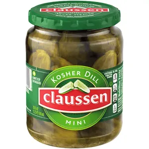 Claussen Kosher Dill Mini Pickles, available in a 20 fl oz jar, are small in size but pack a big flavor. Made with fresh cucumbers straight from the vine, these pickles are refrigerated to maintain their crunchy texture. They are vegan and kosher certified, making them suitable for various dietary preferences. With their delicious taste and perfect size, Claussen Kosher Dill Mini Pickles are great for snacking, adding to a meat and cheese board or charcuterie board. People rave about these pickles, describing them as delicious, crunchy, and their favorite brand of pickles. Whether enjoyed at a picnic, barbecue, or as a standalone snack, Claussen Kosher Dill Mini Pickles are sure to satisfy pickle lovers.