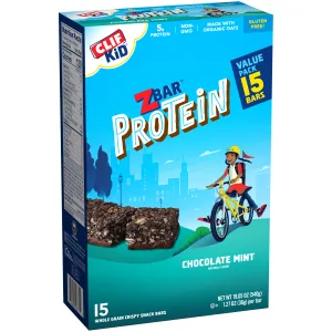 CLIF Kid Zbar Protein Granola Bars, Gluten Free, Chocolate Mint, 15 Ct, 1.27 oz