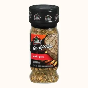 A savory dry seasoning blend for pork, offering smoky, slightly sweet notes and a coarse texture that browns well during grilling or roasting. Commonly used as a dry rub, in marinades, or sprinkled before broiling, reviewers report consistent flavor enhancement, convenient application, and good results on chops, roasts, and ribs.