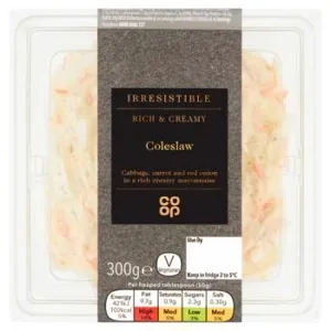 Cabbage, Mayonnaise, Rapeseed Oil, Water, Salted Egg (Egg, Salt)), White Wine Vinegar, Sugar, Salt, Stabilisers (Guar Gum, Xanthan Gum), Mustard Powder, Carrot, Red Onion, Double Cream (Milk), Rapeseed Oil, Dijon Style Mustard (Water, Spirit Vinegar, Mustard Flour, Salt, Mustard Bran, Turmeric, Black Pepper, Pimento, Cinnamon, Cloves), Stabilisers (Guar Gum, Cornflour), Potassium Sorbate)