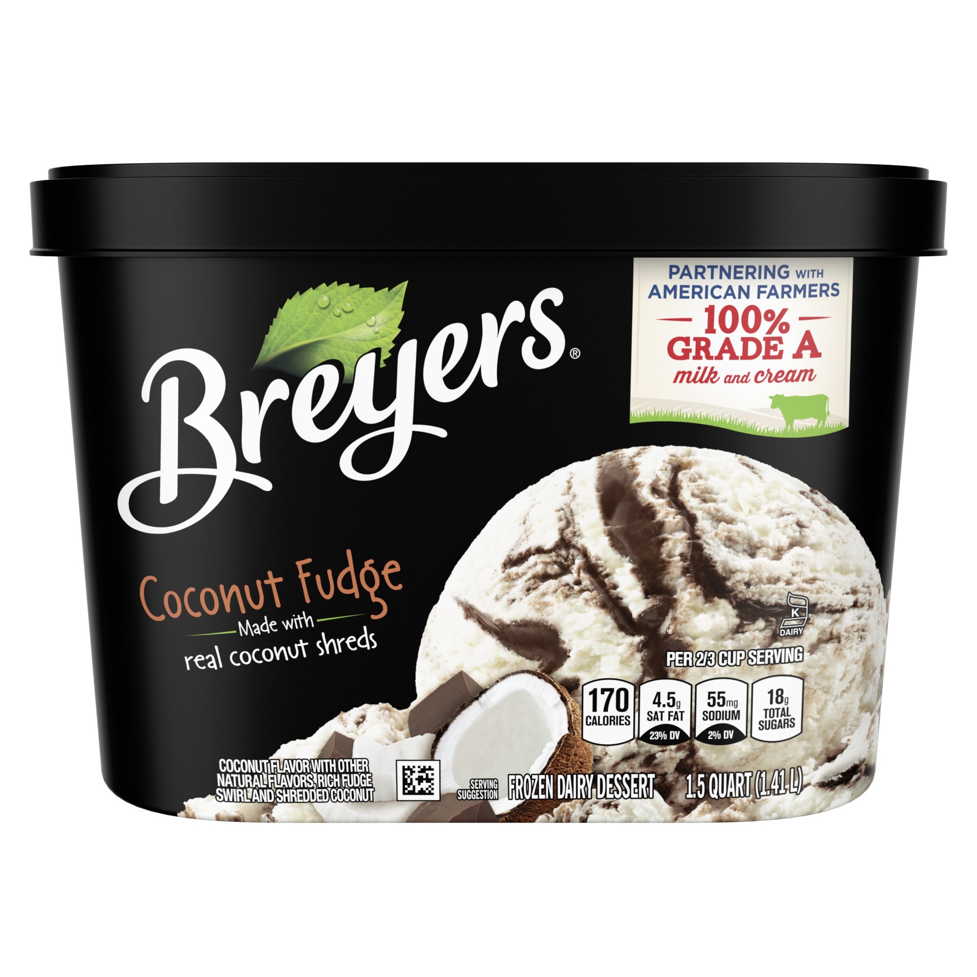COCONUT FUDGE COCONUT FLAVOR RICH FUDGE SWIRL AND SHREDDED COCONUT FROZEN DAIRY DESSERT, COCONUT FUDGE