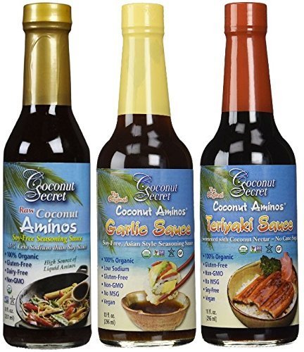 Coconut Secret Coconut Aminos Teriyaki Sauce, Garlic Sauce, and Aminos 3 Pack