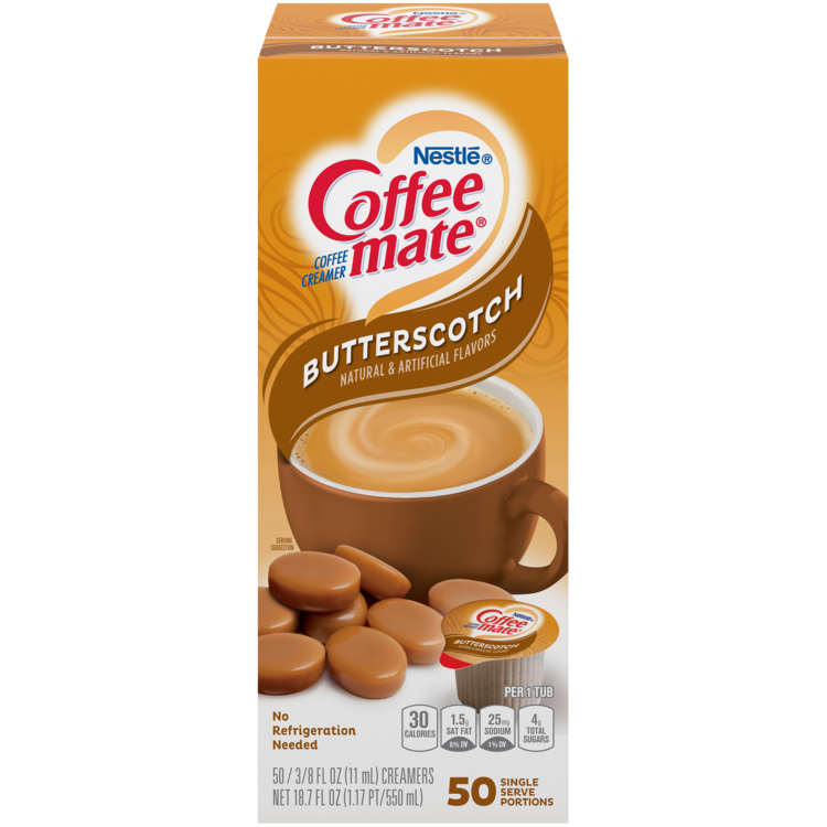 Coffee Mate Butterscotch Liquid Coffee Creamer Singles, Lactose-Free Creamer, 0.375 Fl Oz, 50 Ct